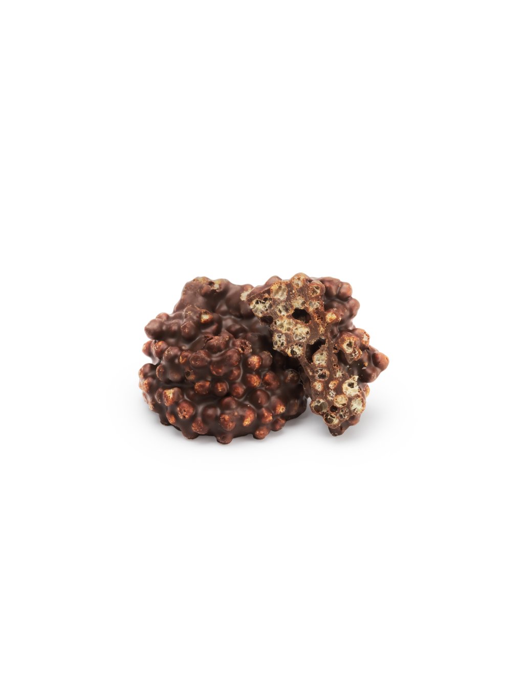 Křupavé souffletine cereální kuličky spojené s hořkou čokoládou do lehkých hrudek plných textury. Každé sousto nabízí výrazné křupnutí a intenzivní kakaovou chuť s jemně karamelovým tónem. Ideální pro milovníky křehkých a výrazně čokoládových pochoutek.